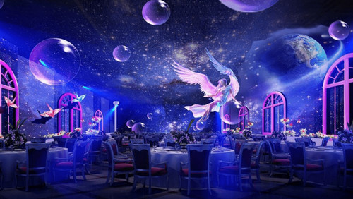 何为全息光影婚礼宴会厅?全息光影婚礼宴会厅是基于全息互动投影技术与裸眼3d视觉打造的梦幻主题空间,在婚宴现场将大量主题场景通过投影的方式投射在特定介质上,为新人带来科技与场景融合的全新婚礼体验。结合裸眼3d视觉技术,数百种主题场景,让新人及到访宾客每一步都仿若置身于真实场景,感受数字场景带来的视觉震撼。