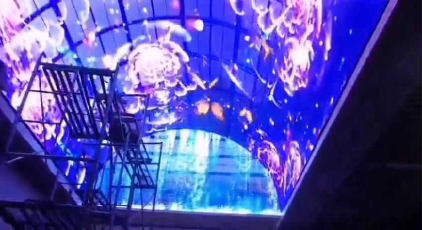 LED天幕屏,LED天幕屏,就是安装在相对密闭空间上方的穹顶显示屏,是展现梦幻的LED产品,起到渲染、装饰、亮化效果。一般适用于高档星级酒店大堂、大型购物中心、商业步行街、城市中心广场、大型舞台等大型建筑天花顶上,面积大、重量轻、形状各异。